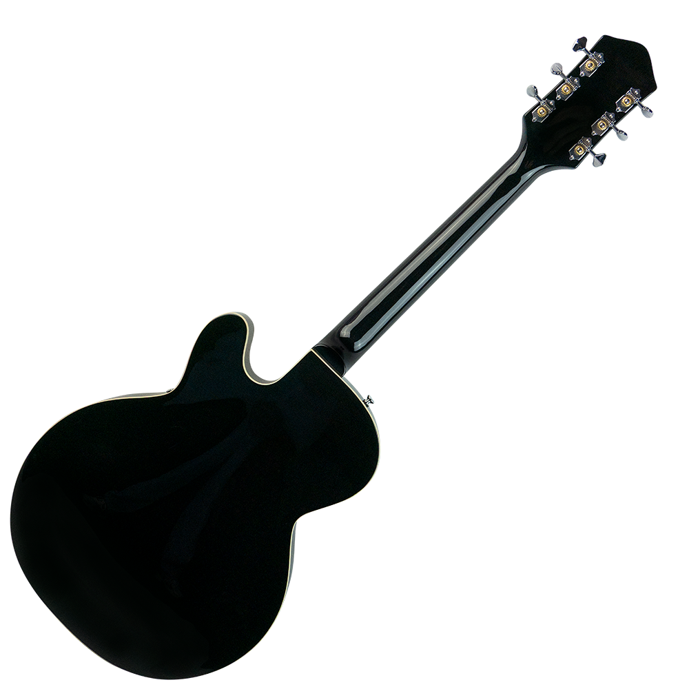 Silvertone proudly reintroduces the iconic 1446 in Gloss Black - a legendary semi-hollow electric guitar that defined the sound of rock history. Played by icons like Chris Isaak, Elvis Costello, and Hubert Sumlin, this guitar’s unmistakable tone and style are now available to today’s players.