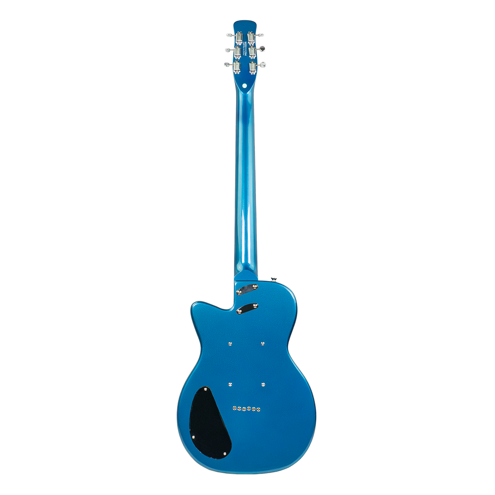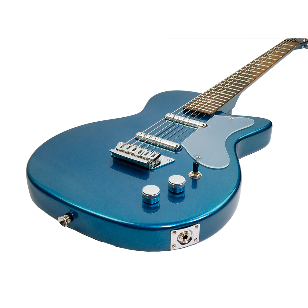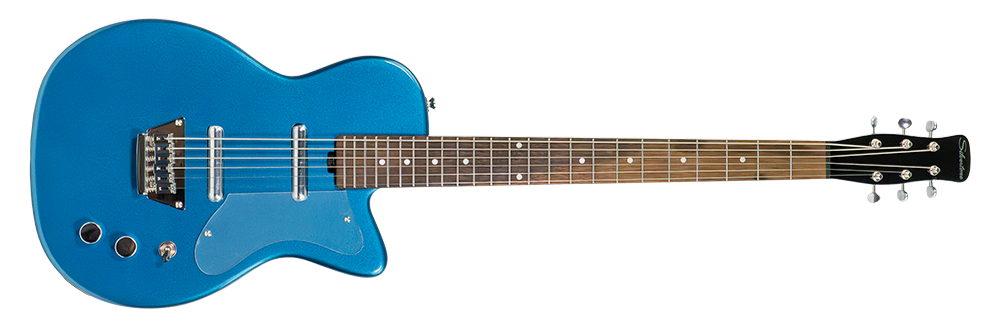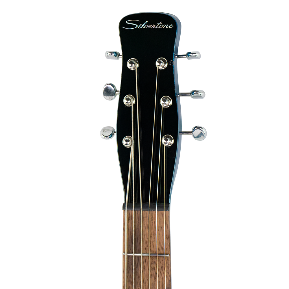 The all new Silvertone 1373 baritone gets its punch and sustain from the solid mahogany body and string through body bridge which further enhances the resonance and sustain. The 28” scale adds just the right amount of length to allow the lower strings to really ‘speak’, without moving too far from the comfortable feel of standard tuning guitars. ‘Hemispherical’ rounded fret ends provide an exceptionally comfortable playing surface. Our new Alnico 5 Silvertone Lipstick pickups are designed to offer all the clean tones and bell like top end of the original pickups, with a bit more output to comfortably drive your pedals, tube amp, or digital modeler. This baritone guitar is sure to add inspiring new colors to your playing and recording.